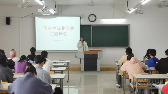 班会开始前,各毕业班辅导员首先在各自班级宣布配备一名负责就业的就业专员,并要求班级就业专员制定一份毕业求职意向表,来以此知晓毕业班级学生就业动向、就业想法;随后,各辅导员分析了当前严峻的就业形势,提醒并鼓励同学们充分做好就业准备,大胆拓宽就业渠道,自信果敢、积极就业。随后从当前高校毕业生就业形式、毕业生求职材料准备及注意事项、求职渠道及面试技巧三个方面进行讲解,并引导学生制作具有个人特色的简历以提高自我规划的能力,要求同学们思考就业目标和方向,找准自身定位,结合自身情况与优势来选择就业方向。班会中,各辅导员还介绍了获取就业信息的相关渠道和就业签约的相关手续操作流程,讲解了签约成功需要进行哪些步骤。最后在班会结束之际,毕业生们纷纷表示将以积极健康的心态来面对将来的就业挑战,寻找适合自己的就业方向,积极就业。