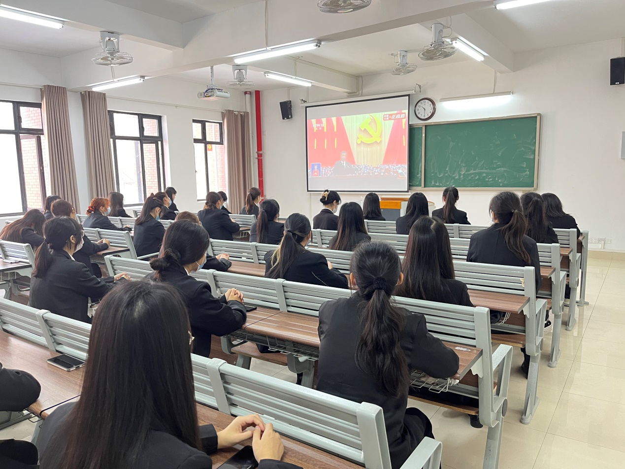 参加集中观看活动的学生党员、学生代表身着正装、佩戴党员徽章、团徽和口罩,大家全神贯注仔细观看、认真聆听党的二十大的盛况,大家对报告总结的过去五年来我国经济社会发展取得的伟大成就深感自豪,对未来五年经济社会发展宏伟蓝图充满信心。党的二十大是在迈上全面建设社会主义现代化国家新征程、向第二个百年奋斗目标进军的关键时刻召开的一次十分重要的大会。报告气势恢宏,立意深远,总揽全局,鼓舞人心,是一个反映全党意志、体现人民意愿的报告,是夺取新时代中国特色社会主义伟大胜利、实现中华民族伟大复兴的行动指南。