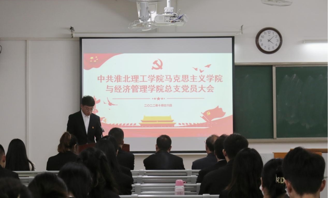 大会在庄严雄壮的《国歌》中拉开帷幕,校党委委员、党建办公室主任付金沐同志受党委书记朱德顺同志的委托参加大会,并发表重要讲话。付主任首先向马克思主义学院和经济管理与建筑工程学院全体党员和师生员工表示热烈祝贺。付主任强调,这次党员大会是学院全体共产党员和师生员工政治生活中的一件大事,恰逢中国共产党第二十大胜利闭幕之际,在全校师生员工以高昂的精神风貌和饱满的热情,学习贯彻党的二十大精神之际,召开这次会议,意义特别深远,希望全体党员要深刻认识开好这次大会的重要意义。付金沐对总支工作提出三点建议:一是要认真学习宣传贯彻党的二十大精神,加强党的政治思想建设,坚定社会主义办学方向,学习好、宣传好、贯彻好党的二十大精神,是当前和今后一个时期的首要政治任务。二是要持续加强基层党组织的组织建设,发挥好基层党组织政治核心作用。三是要坚持立德树人,把培养担当民族复兴大任的时代新人作为基层党组织的根本任务。最后付金沐主任强调,相信在校党委行政的关心支持下,在新一届党总支委员会的带领下,马克思主义学院和经济管理与建筑工程学院学院在新的征途上一定能创造更加辉煌的未来。
