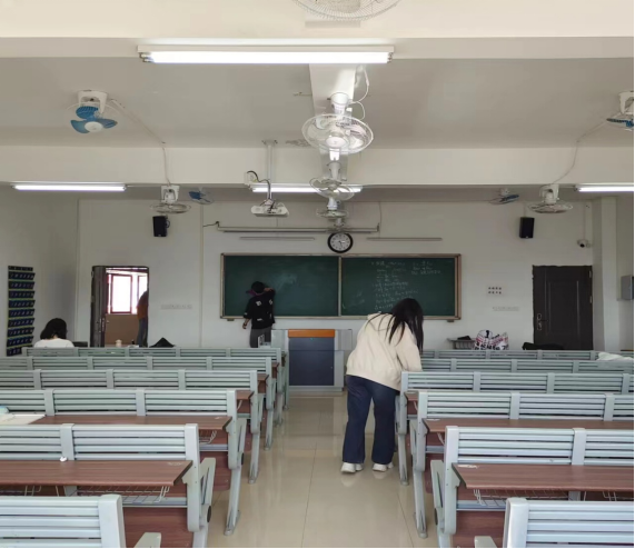 室内区域中,在活动负责人的带领下,在对教室区域进行细致分工后,同学们立即对教室进行细致全面的清洁,教室内处处充斥着忙碌的身影。同学们不畏炎热,热情高涨,为教室整洁明亮的环境辛勤劳动,挥洒着自己的汗水。经过一个小时的“奋战”,教室焕然一新。