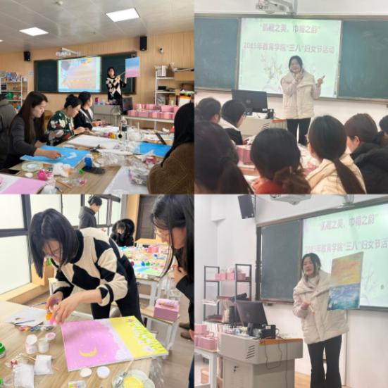 2025年3月5日下午,教育学院在艺术楼和行政楼画室举办了一场别开生面的“肌理之美,巾帼之韵”三八妇女节活动,旨在通过艺术创作与交流,为教师们带来一个温馨而有意义的女神节。