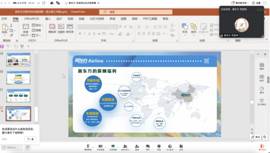 宣讲会上,新东方合肥学校人力资源部负责人范立渊围绕企业背景、招聘岗位、职业发展及薪资福利等内容展开详细介绍。新东方通过基础教育、素质教育、国际教育、成人教育、智慧教育、图书文创、直播电商、文旅业务、教育科技与投资这9大业务板块构建了覆盖全年龄段、全场景的教育生态体系,形成“教育+科技+文化”的生态闭环。始终坚守“终身学习、全球视野、独立人格、社会责任”的育人理念,重视教育人才的培养与储备,本次招聘涵盖中小学学科教师、课程顾问、教研专员等多个岗位,为教育学子提供了多元化职业选择。此外,负责人还特别介绍了福利待遇与发展空间,如综合薪资、住宿机制、午餐补贴、年度调薪、晋升空间、培训机制、定期体检、年终奖金、团建活动以及节日福利等。这些福利措施旨在吸引和留住优秀人才,为员工的职业发展提供有力保障。