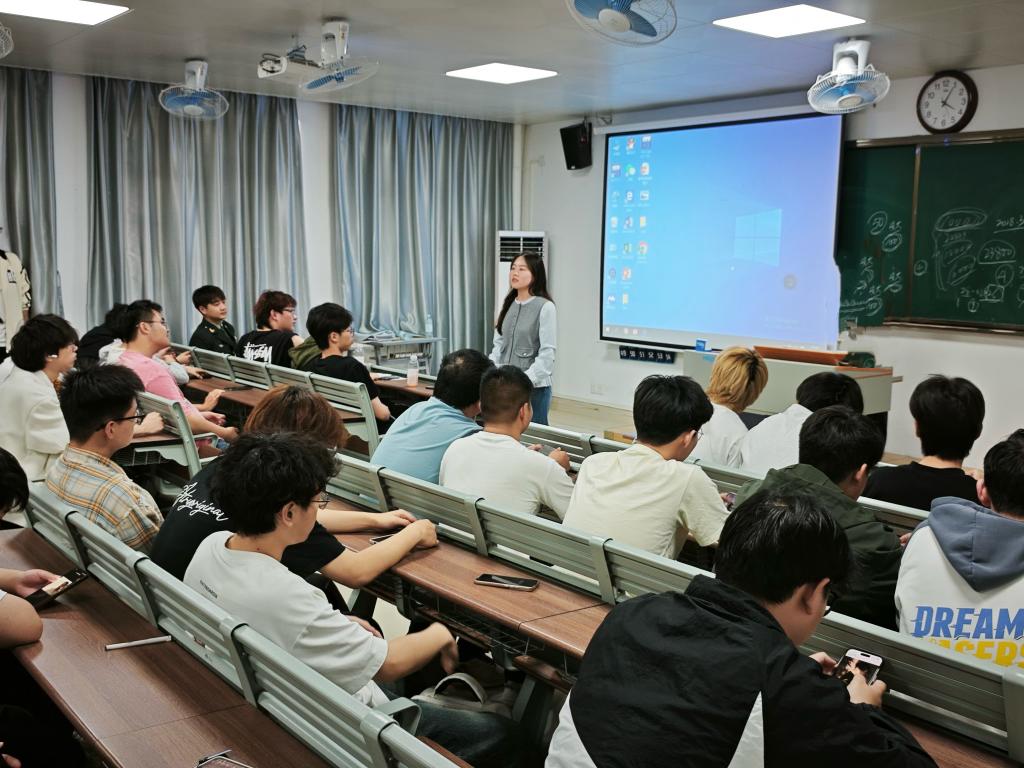 随后,学校负责征兵工作站的邵琦皎老师重点解读了大学生征兵入伍优抚优待政策。邵琦皎老师详细介绍了从入伍补贴、学费补偿到升学优惠、就业安置等一系列政策。她强调,国家高度重视大学生入伍,出台这些政策旨在鼓励更多高素质人才投身军队建设,为大学生提供广阔的发展空间。对于同学们提出的关于政策细节的疑问,邵琦皎老师都一一耐心解答,让同学们对入伍后的权益保障有了清晰的认识。