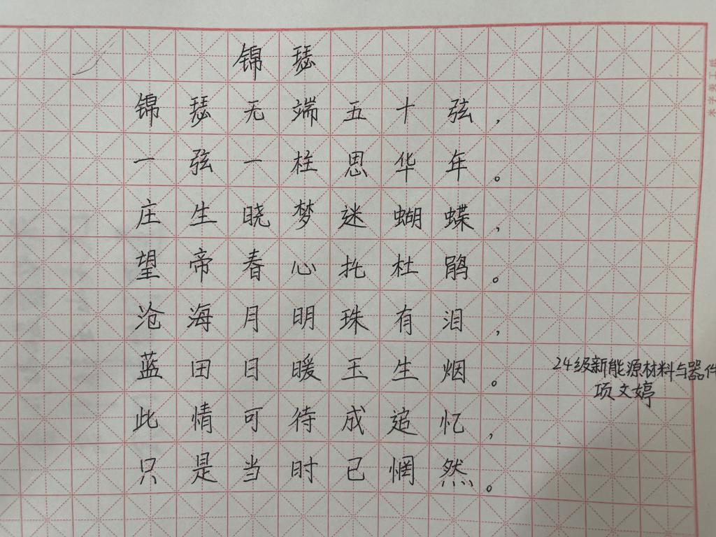 在读书月的馥郁书香中,能源材料与化工学院成功举办了“笔墨中国”硬笔书写大赛,以笔墨为媒,不仅为热爱书法的同学们搭建了展示才华的舞台,更在学院内掀起了一股传承中华优秀传统文化的热潮。