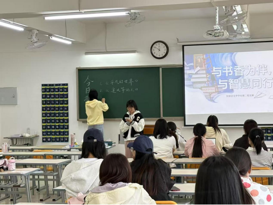 为引领学生阅读文化新风尚,营造浓厚的书香氛围。4月23日中午,教育学院汉语言文学专业学生第一、第二党支部于2号教学楼323教室联合开展“与书香为伴,与智慧同行”主题阅读分享活动。本次活动中,同学们积极分享自己阅读过的书籍,通过分享优秀读物,激发阅读热情,共同建设书香校园。