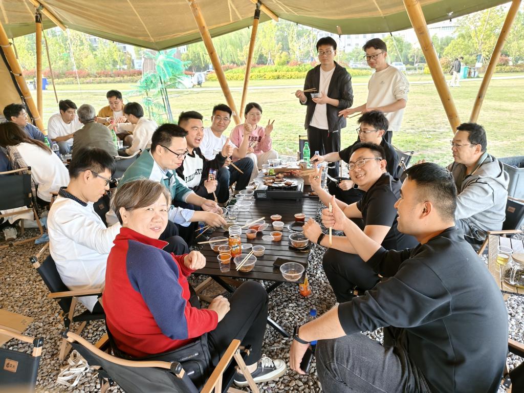 傍晚五时,野炊活动正式开始。大家分工协作,配合默契,在炊烟袅袅中体验动手的乐趣。围坐在餐桌旁,伴着悠扬的音乐和绚丽的晚霞,品尝着亲手烤制的美食,畅谈工作与生活,团队情谊在轻松愉快的氛围中不断升温。活动结束后,教职工们自觉整理场地,展现了良好的环保意识。