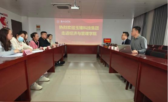 经济与管理学院院长吴玲对玉臻科技集团的到来表示热烈欢迎,并向与会人员介绍了学院的基本情况。学院开设了经济与管理类7 个本科专业,在校生2300余人。学院注重学生实践能力培养,通过增加实践课程比例、组织学生参加各类技能大赛等方式,提升学生专业素养和实践能力。