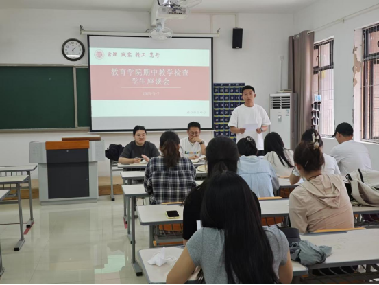 为加强师生沟通交流,切实提升教学质量,保障教学工作高效开展。教育学院于5月7日下午,在2号教学楼306、307、308、309教室分专业召开2024-2025学年第二学期期中教学检查学生座谈会,广泛倾听学生对教学工作的意见与建议。各专业相关教研室主任、专任教师代表、辅导员及班级学习委员代表参与此次会议。