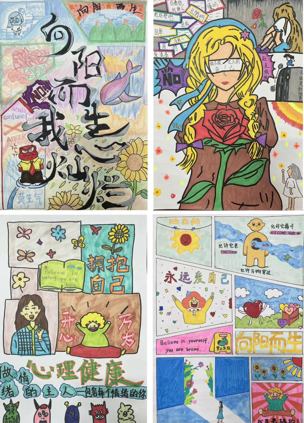 “绘心世界,点亮健康”心理健康绘画比赛为学生提供了一个表达内心世界的独特平台。活动共收到参赛作品50 余幅,学生们充分发挥想象力和创造力,用画笔勾勒出对生活的热爱、对未来的憧憬,以及面对压力和困惑时的情感。其中,一幅以“破茧成蝶”为主题的作品,生动展现了作者从困境中走出、重获自信的过程。在绘画过程中,学生们将内心的情绪转化为艺术创作,实现了情感的释放与疏导,同时也增强了自我认知和心理调适能力。此次比赛激发了学生的艺术潜能,丰富了校园文化生活,更成为学生心理健康教育的有效载体。