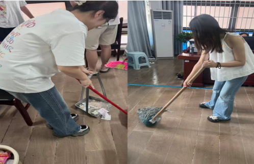 祝福于心,更践于行。在完成“感恩便签墙”的布置后,支部的党员同学又分组前往艺术楼办公区域开展义务清扫活动。大家分工协作,默契配合,将艺术楼的办公室打扫干净,为师生们营造了一个更加舒适、清爽的工作环境。