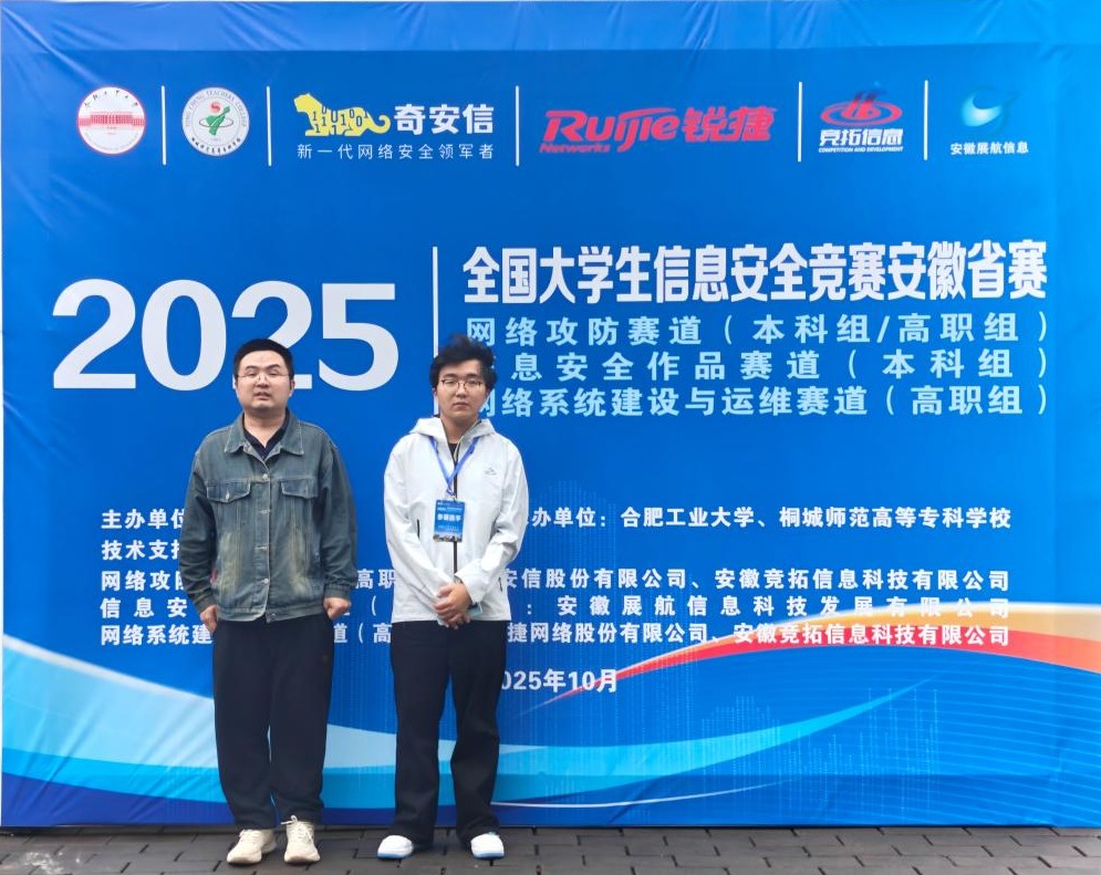 2025年10月18日,由桐城师范高等专科学校承办的2025年全国大学生信息安全竞赛安徽省赛(信息安全作品赛)决赛圆满落幕。诸侯快讯入口官网电子与信息工程学院选派的学生团队表现优异,由殷志伟、杜良轩、姜婷婷三位同学组成的参赛队凭借其创新的信息安全作品,最终荣获省级二等奖,展现了我院在网络安全领域人才培养的扎实成效。