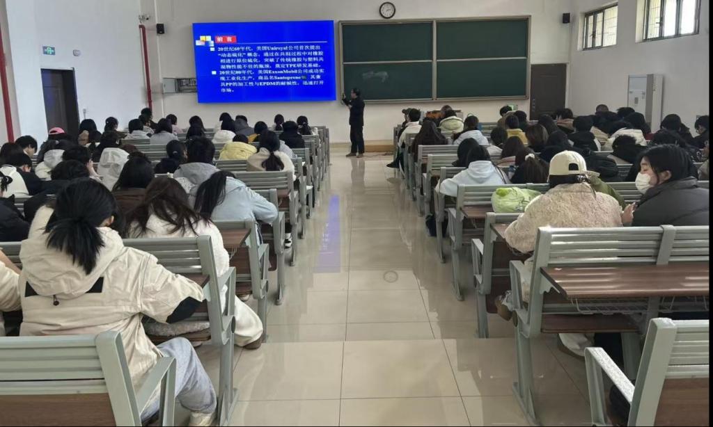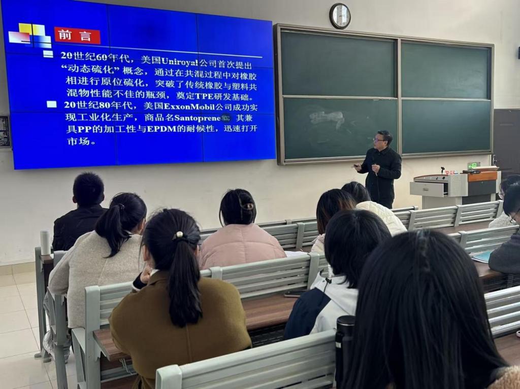 讲座中,肖汉文教授聚焦EPDM/PP热塑性弹性体核心议题,围绕制备技术、性能调控及应用三大板块展开。内容紧扣行业需求,理论与应用结合紧密,为科研与生产提供了有效参考。语言通俗易懂,逻辑清晰。报告既有科普性,又有学术性,既涵盖了专业理论的深度解析,又融入了实践应用的宝贵经验,让在场师生受益匪浅。
