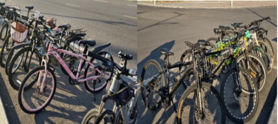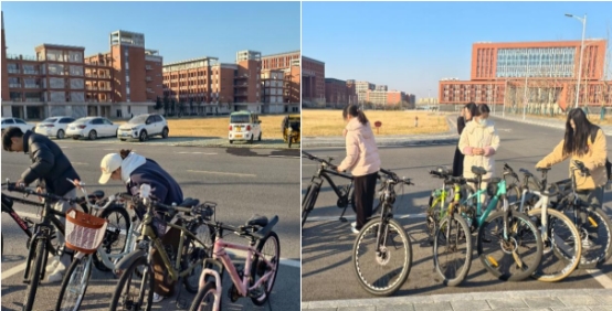 当日下午,小组将理论学习成果转化为实际行动,在校门口及周边自行车停放区域开展了“文明校园我先行”规范停车志愿服务。活动中,成员们分工协作,将随意停放、倒伏的自行车逐一扶正,并整齐摆放到指定停车区域。同时,他们还主动引导前来停车的同学规范停放,宣传文明停车理念。