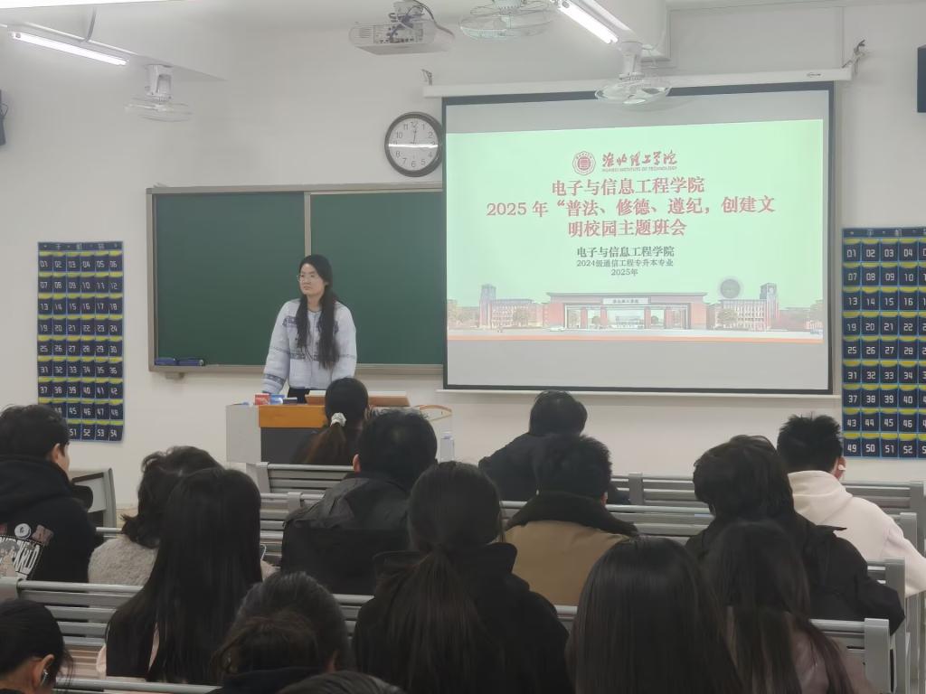 为深入落实立德树人根本任务,深化“依法治校、以德治校”理念,积极响应学校2025年“普法、修德、遵纪,创建文明校园”专项活动号召,电子与信息工程学院精心谋划、系统推进,以主题演讲、文明修身大讨论、21天学习打卡、海报创作展示、文明空间评选、主题班会六大系列活动为载体,构建起全方位、多层次、立体化的育人体系,让法治观念、道德修养、纪律意识深度融入校园生活,专项活动取得丰硕成效。