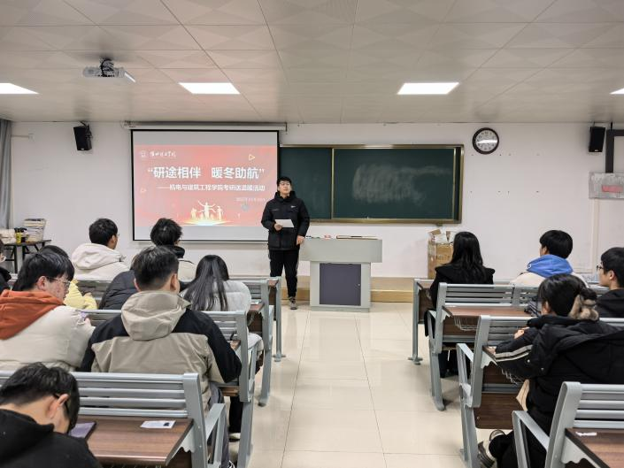 2026年全国硕士研究生招生考试初试将于12月20日正式开始,为给学院考研学子在冲刺阶段加油打气、缓解压力,12月16日下午,机电与建筑工程学院于一教320教室成功举办“研途相伴·暖冬助航”考研送温暖活动,为全体考研学生送上定制文具礼包与学院真挚祝福,学院党总支书记、院长张安宁、书记助理邓金鑫及毕业班辅导员老师共同参加,活动由张鹏老师主持。