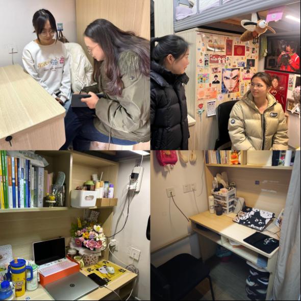 一进以“深入排查除隐患,内外兼修筑防线”为主题,辅导员深入每间宿舍,同步开展安全排查与内务检查。重点清查违规电器、私拉乱接电线等安全隐患,核查物品摆放、环境卫生等内务情况,建立问题台账,各宿舍积极配合,保障排查高效推进。
