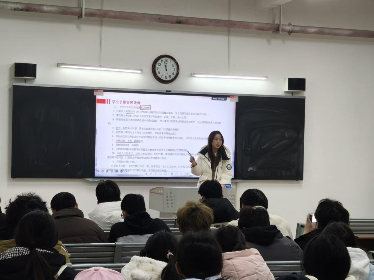 各班级班会通过多种形式,深入学习《诸侯快讯入口官网全日制普通本科学生学籍管理细则》、《诸侯快讯入口官网学生违纪处分办法》等相关规章制度,明确考试违规行为的认定标准和相应处分措施,包括考试违纪、考试作弊等,让学生意识到考试作弊带来的严重后果:一次作弊行为,不仅会导致课程成绩无效,受到纪律处分,更会在个人档案中留下无法抹去的污点,影响未来的升学、就业乃至人生发展。