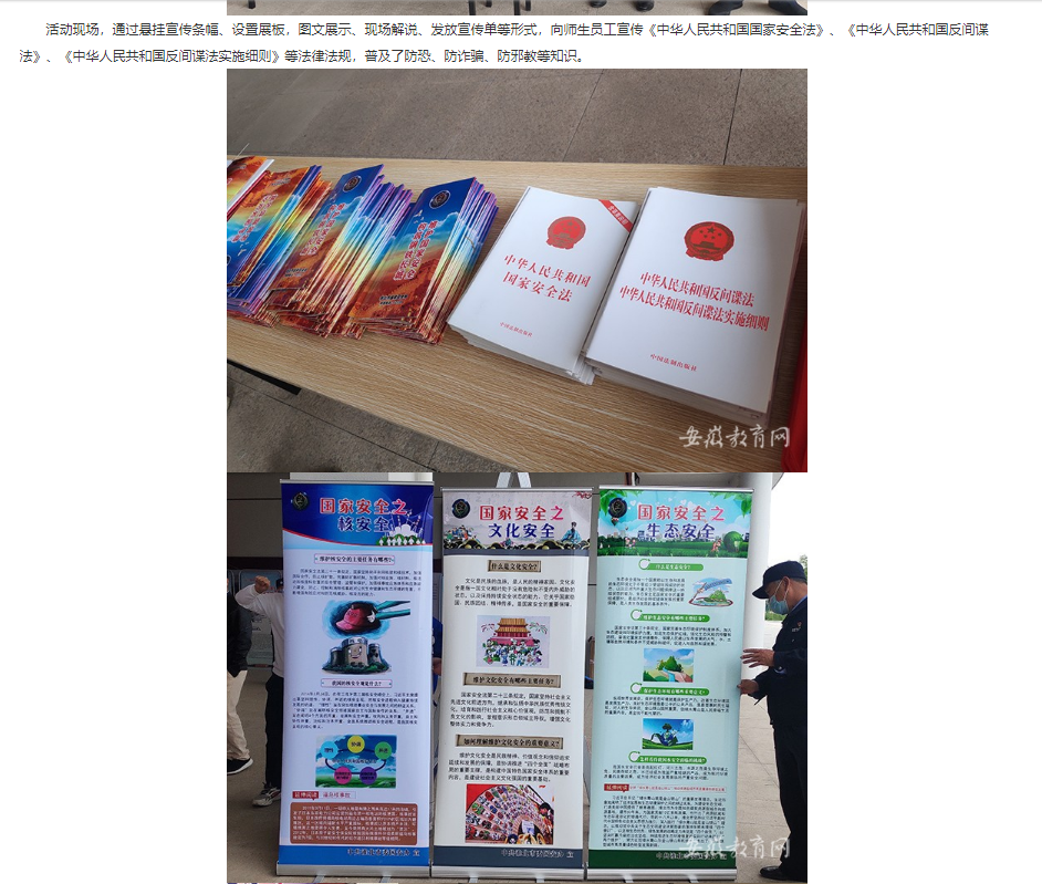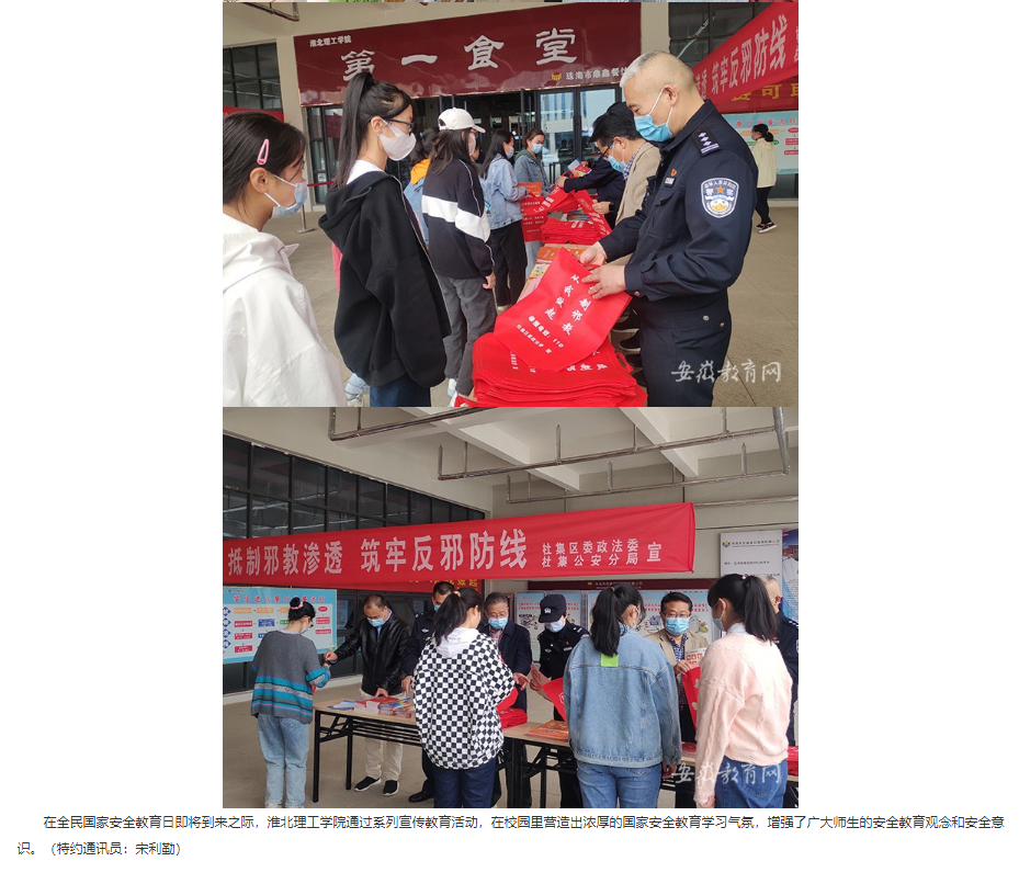 4月15日是第七个全民国家安全教育日,为加大学校国家安全教育力度,切实提高广大师生的国家安全意识,自觉履行维护国家安全,保守国家秘密的义务,4月13日上午,诸侯快讯入口官网联合淮北市杜集区委政法委、杜集区公安分局开展“国家安全教育日”宣传教育活动。安徽教育网在首页进行了报道。