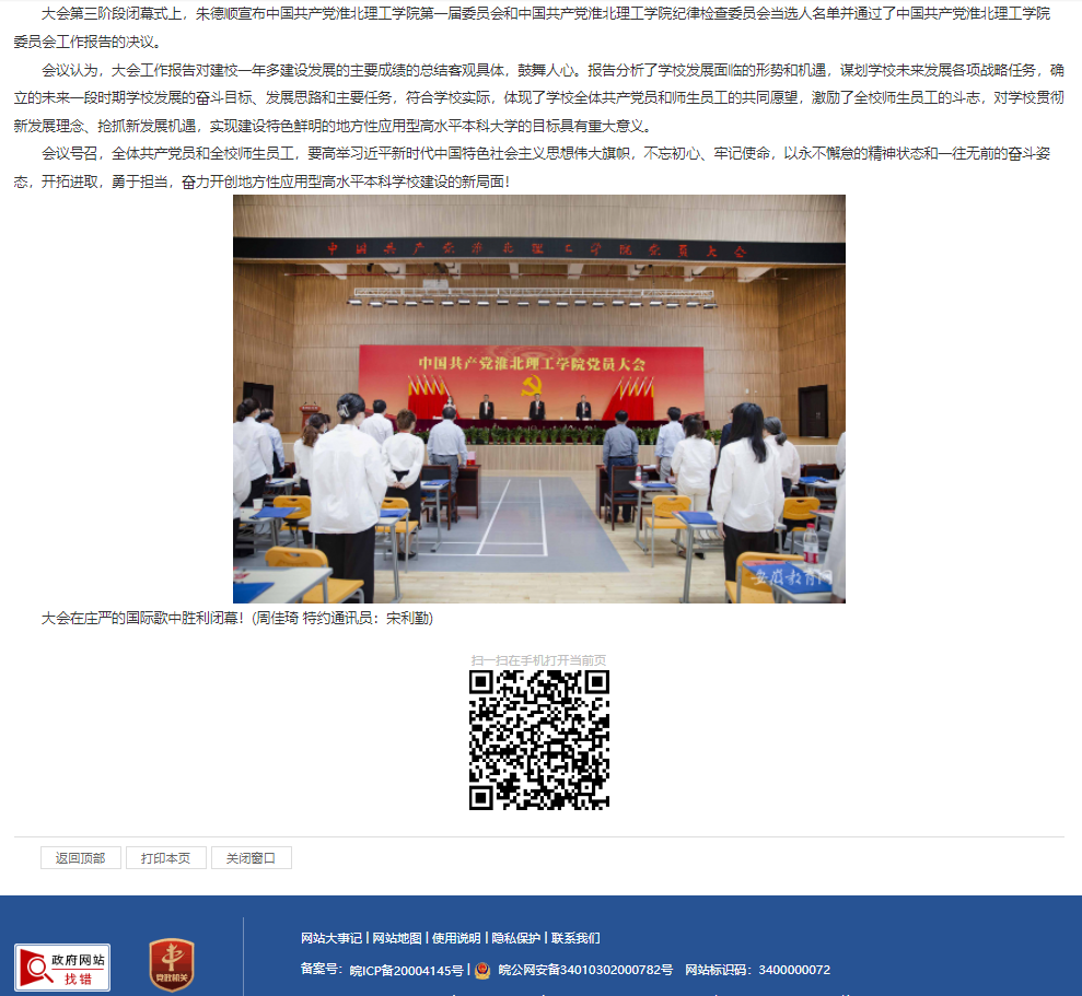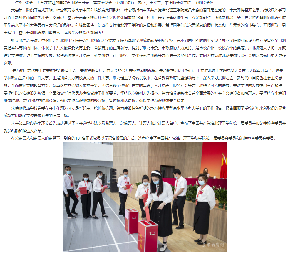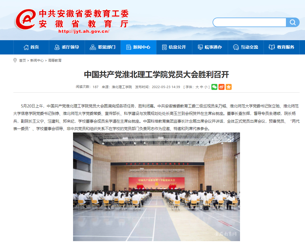 5月20日上午,中国共产党诸侯快讯入口官网党员大会圆满完成各项任务,胜利闭幕。安徽教育网对此进行了报道。
