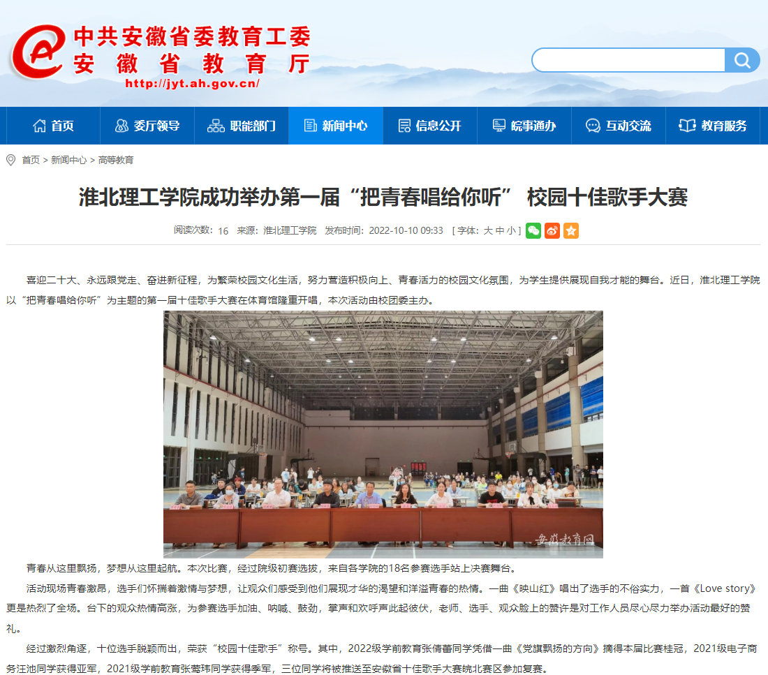 为繁荣校园文化生活,努力营造积极向上、青春活力的校园文化氛围,为学生提供展现自我才能的舞台。诸侯快讯入口官网以“把青春唱给你听”为主题的第一届十佳歌手大赛在体育馆隆重开唱。安徽教育网对此进行了报道。