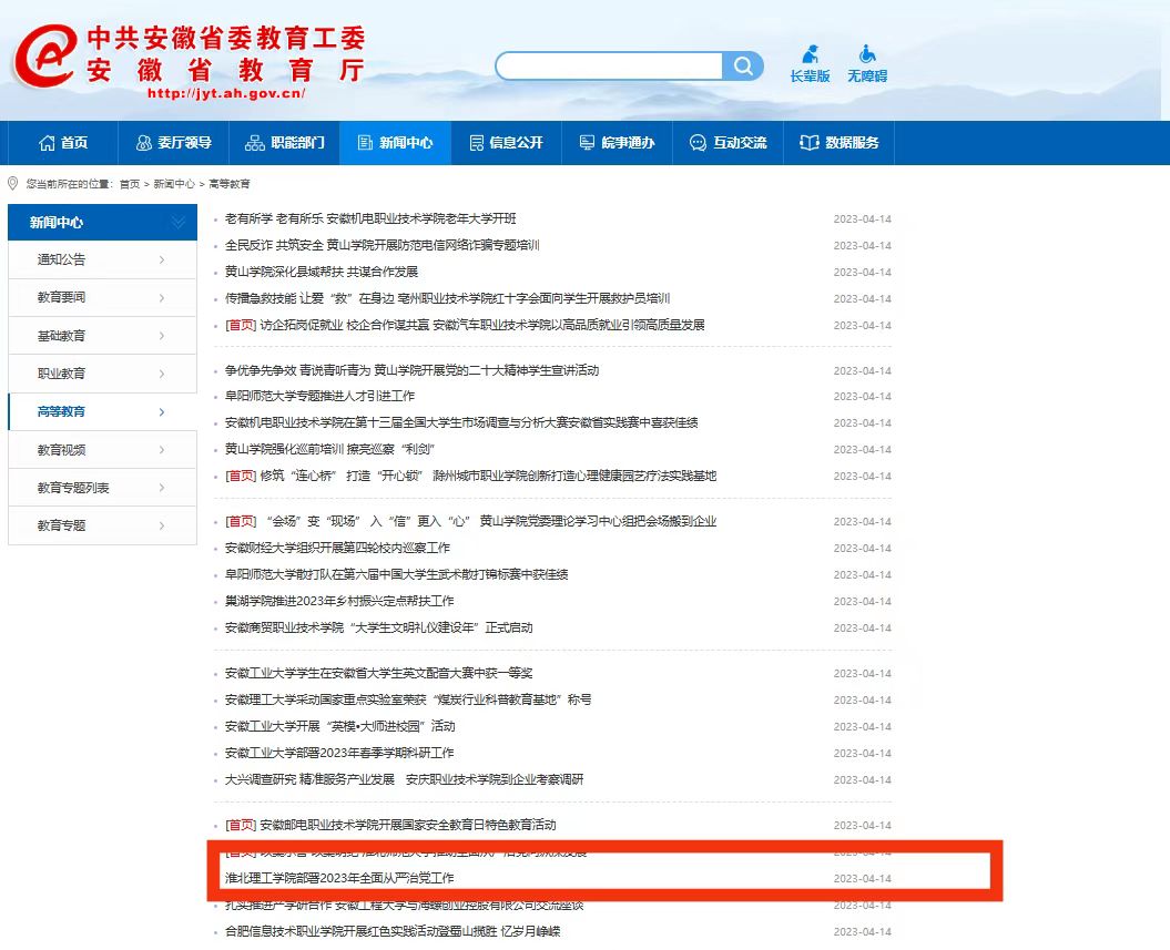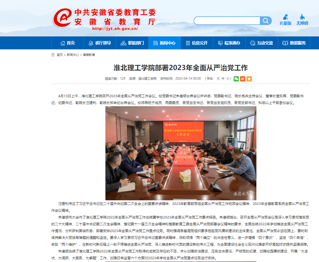 4月13日上午,学校召开2023年全面从严治党工作会议。对此安徽教育网进行了报道: