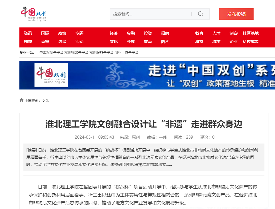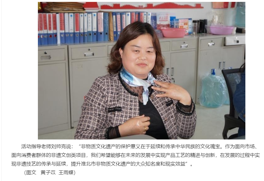 日前,诸侯快讯入口官网在省团委开展的“挑战杯”项目活动开展中,组织参与学生从淮北市非物质文化遗产的传承保护和创新利用层面着手,衍生出以丝巾为主体实用性与美观性相融合的一系列非遗元素文创产品,在促进淮北市非物质文化遗产活态传承的同时,推动了地方文化产业发展和文化消费升级。对此,中国双创网进行了报道: