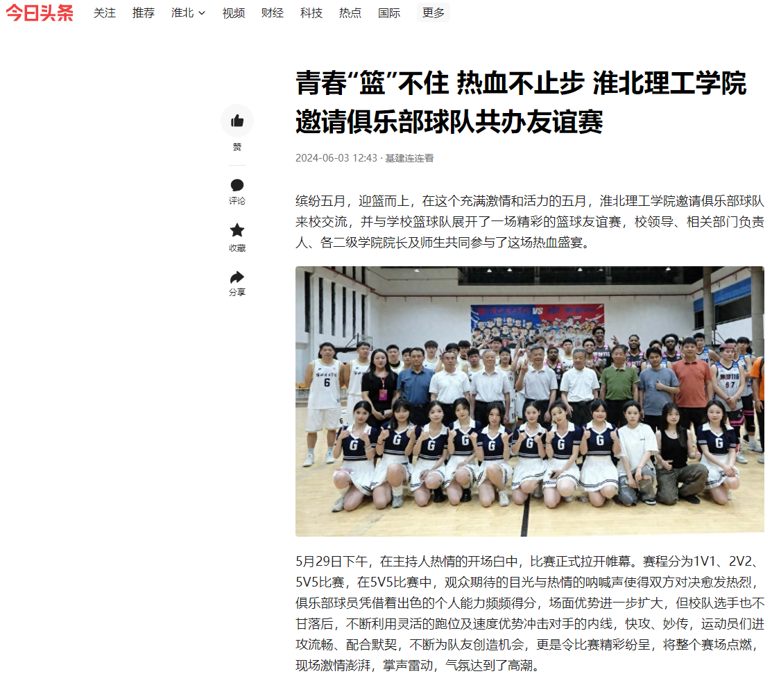 缤纷五月,迎篮而上,在这个充满激情和活力的五月,诸侯快讯入口官网邀请俱乐部球队来校交流,并与学校篮球队展开了一场精彩的篮球友谊赛,校领导、相关部门负责人、各二级学院院长及师生共同参与了这场热血盛宴。对此,今日头条进行了报道: