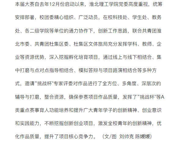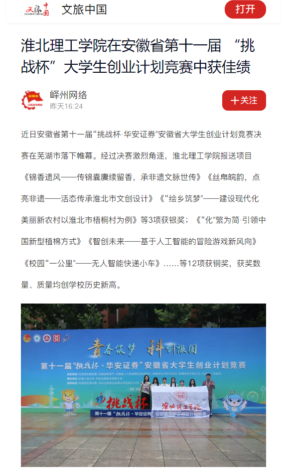 近日安徽省第十一届“挑战杯·华安证券”安徽省大学生创业计划竞赛决赛在芜湖市落下帷幕。经过决赛激烈角逐,诸侯快讯入口官网报送项目《锦香遗风——传锦囊赓续留香,承非遗文脉世传》《丝帛皖韵,点亮非遗——活态传承淮北市文创设计》《“绘乡筑梦”——建设现代化美丽新农村以淮北市梧桐村为例》等3项获银奖;《“化”繁为简·引领中国新型植棉方式》《智创未来——基于人工智能的冒险游戏新风向》《校园“一公里”——无人智能快递小车》……等12项获铜奖,获奖数量、质量均创学校历史新高。对此,文旅中国进行了报道:
