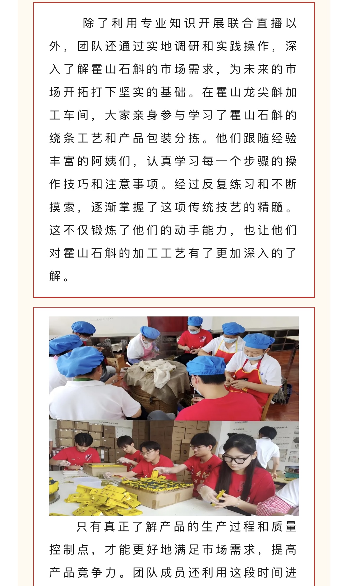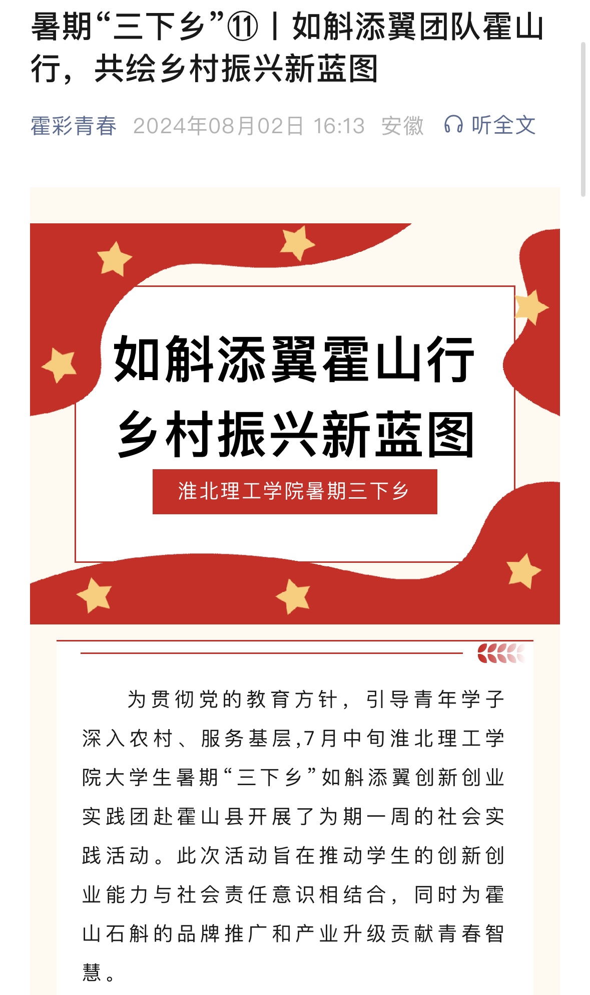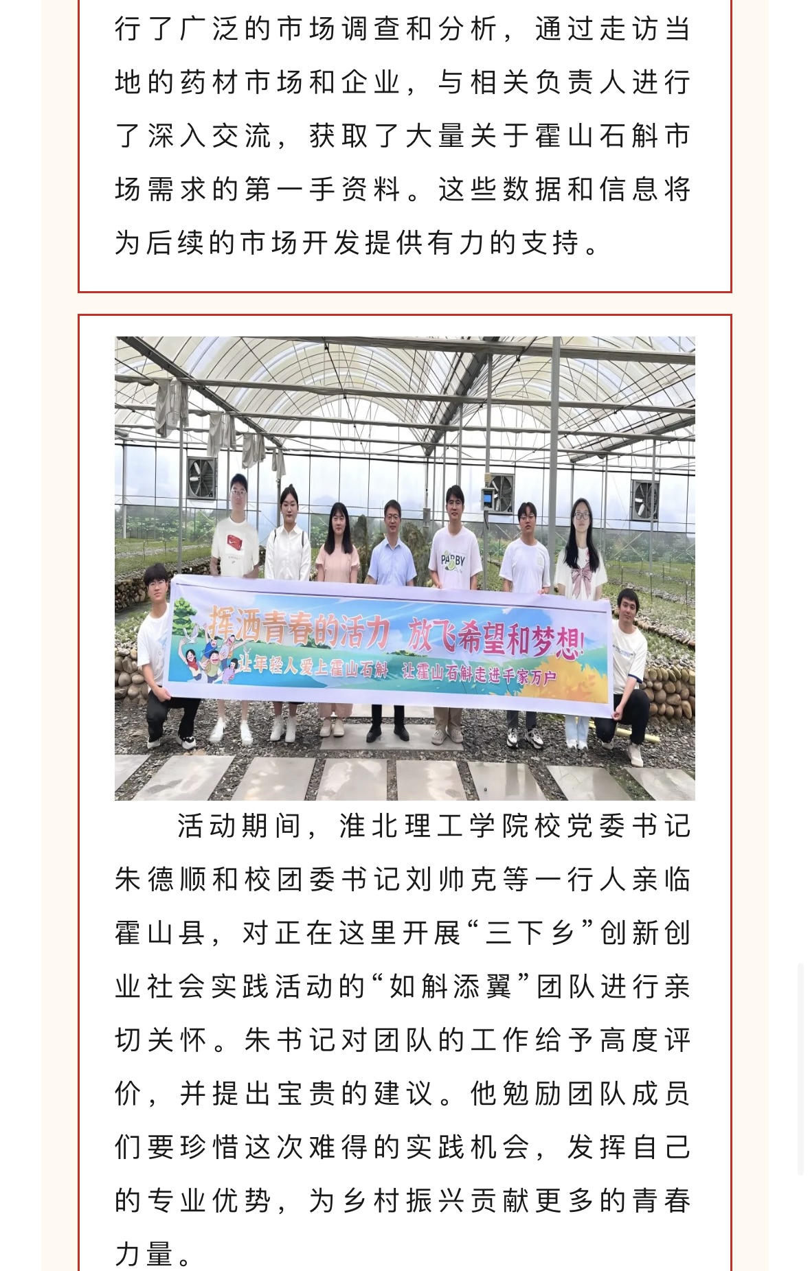 为贯彻党的教育方针,引导青年学子深入农村、服务基层,7月中旬诸侯快讯入口官网大学生暑期“三下乡”如斛添翼创新创业实践团赴霍山县开展了为期一周的社会实践活动。此次活动旨在推动学生的创新创业能力与社会责任意识相结合,同时为霍山石斛的品牌推广和产业升级贡献青春智慧。对此,霍彩青春进行了报道: