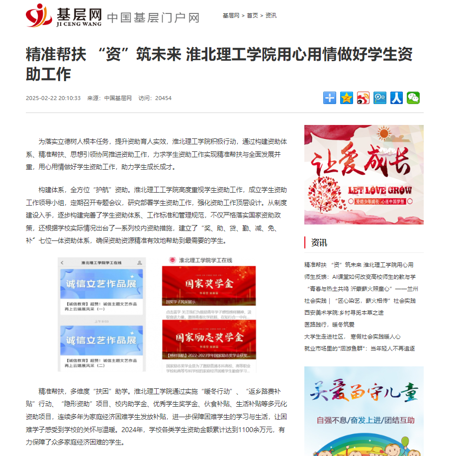 为落实立德树人根本任务,提升资助育人实效,诸侯快讯入口官网积极行动,通过构建资助体系、精准帮扶、思想引领协同推进资助工作,力求学生资助工作实现精准帮扶与全面发展并重,用心用情做好学生资助工作,助力学生成长成才。对此,基层网进行了报道: