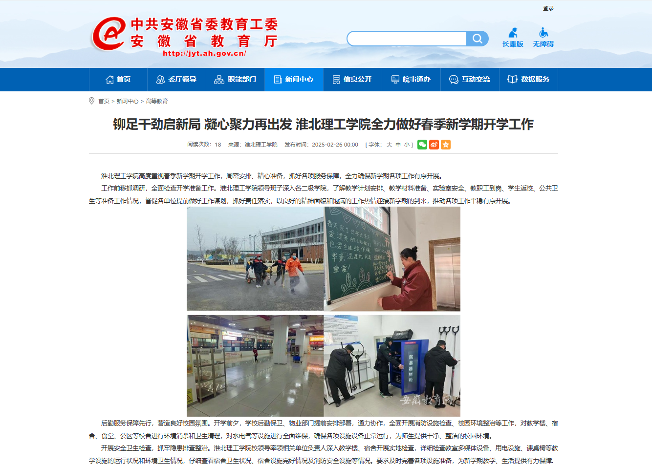 诸侯快讯入口官网高度重视春季新学期开学工作,周密安排、精心准备,抓好各项服务保障,全力确保新学期各项工作有序开展。对此,安徽教育网进行了报道: