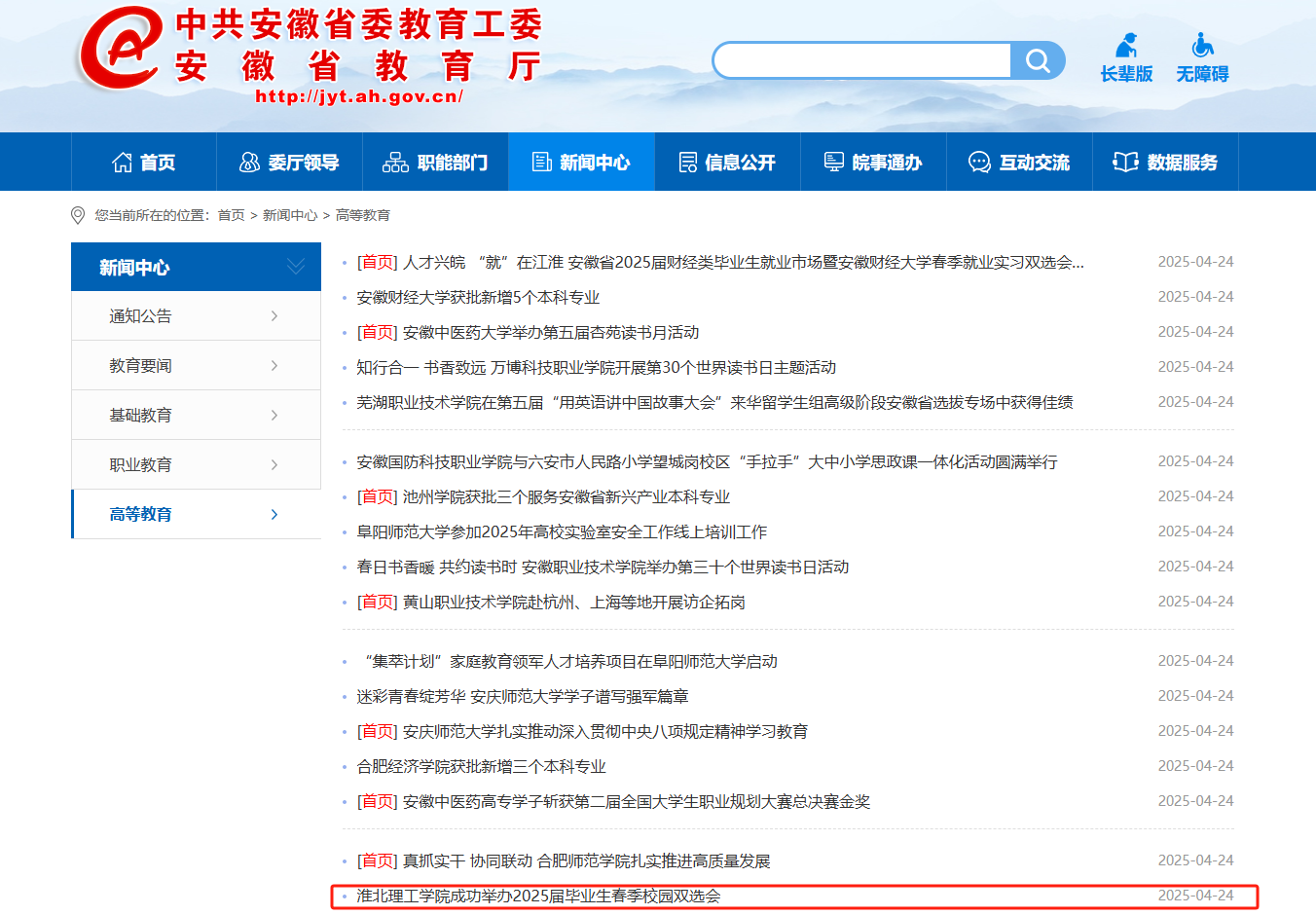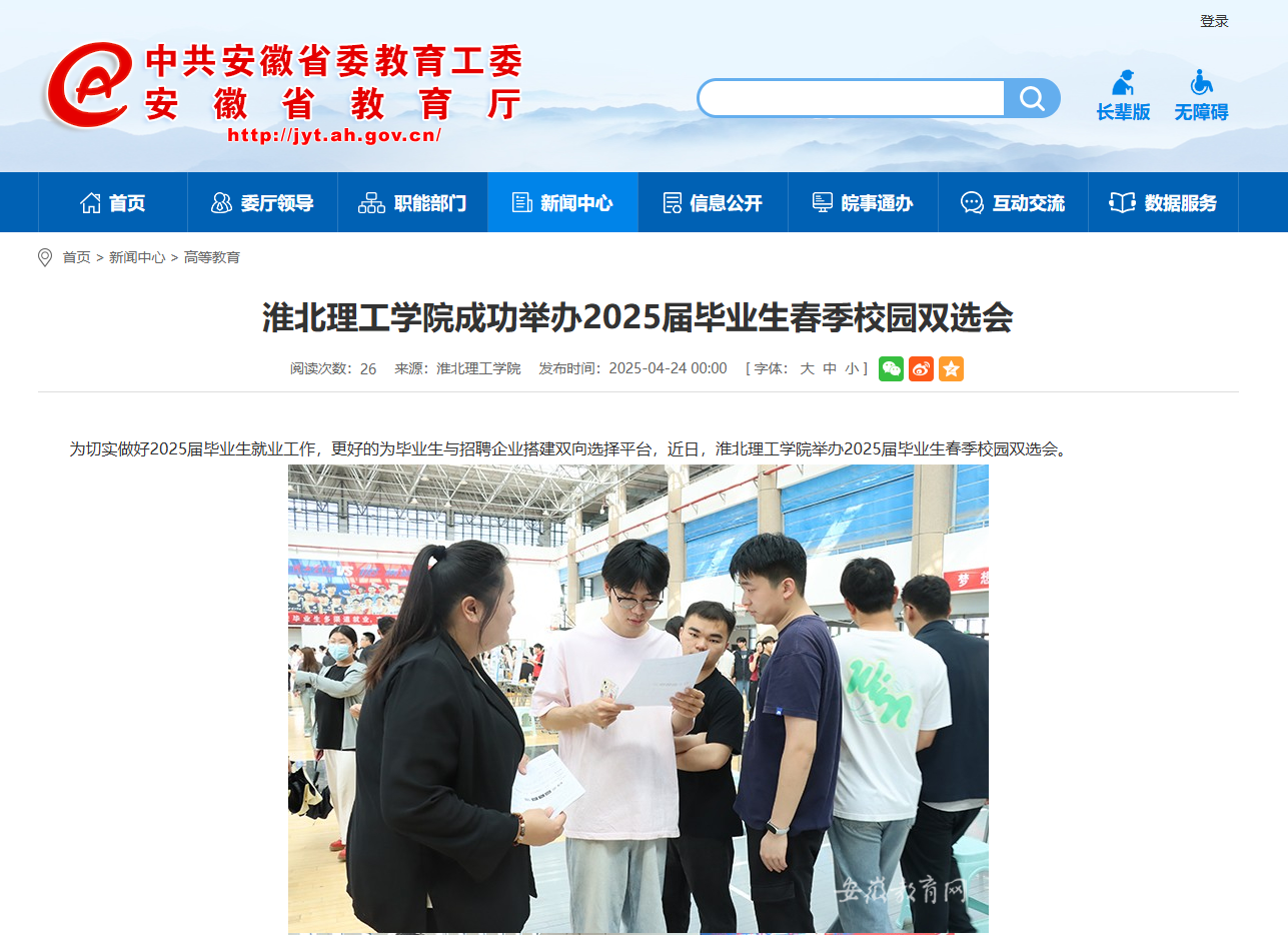 为切实做好2025届毕业生就业工作,更好的为毕业生与招聘企业搭建双向选择平台,近日,诸侯快讯入口官网举办2025届毕业生春季校园双选会。对此,安徽教育网进行了报道: