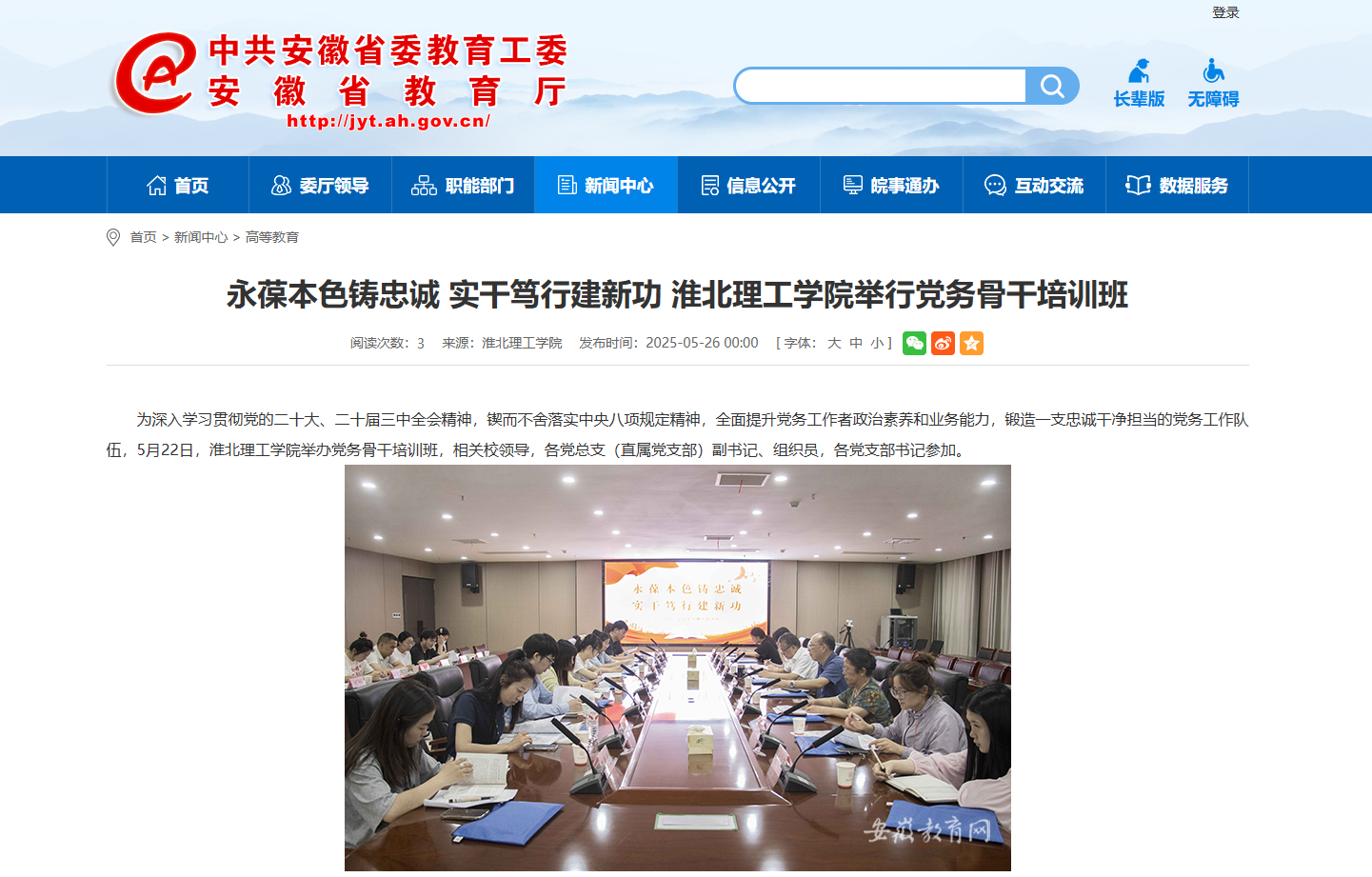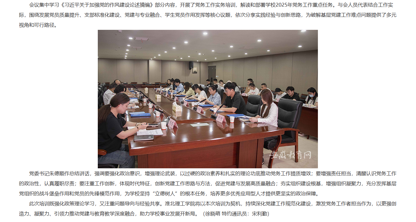 为深入学习贯彻党的二十大、二十届三中全会精神,锲而不舍落实中央八项规定精神,全面提升党务工作者政治素养和业务能力,锻造一支忠诚干净担当的党务工作队伍,5月22日,诸侯快讯入口官网举办党务骨干培训班,相关校领导,各党总支(直属党支部)副书记、组织员,各党支部书记参加。对此,安徽教育网进行了报道: