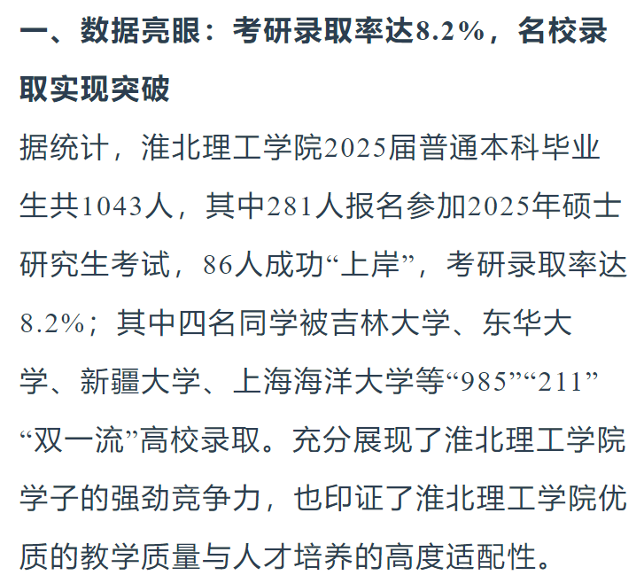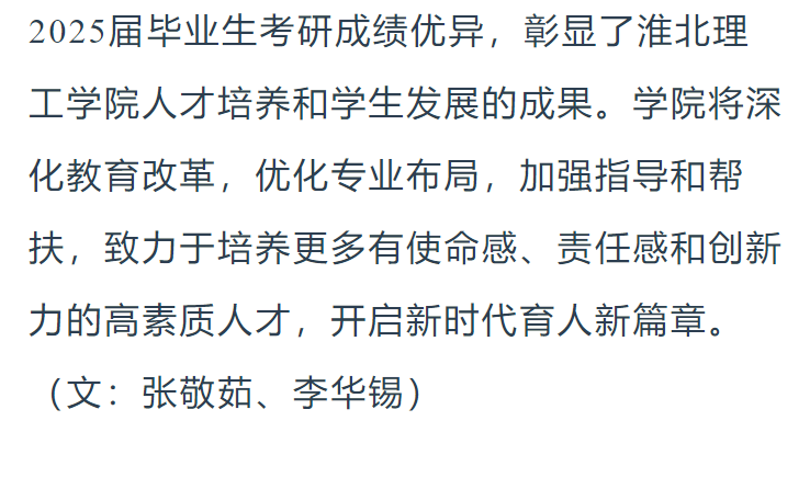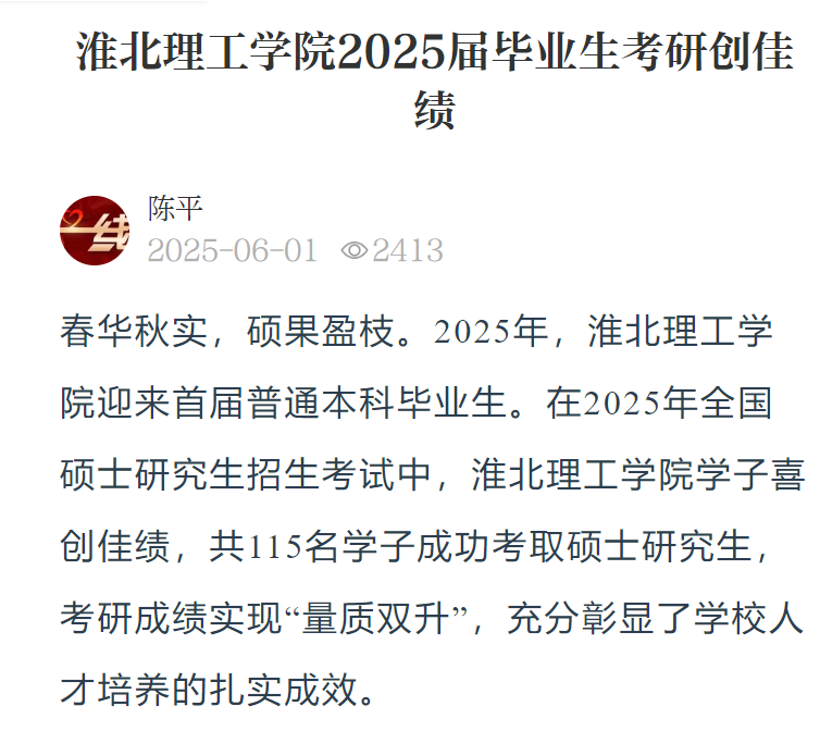 春华秋实,硕果盈枝。2025年,诸侯快讯入口官网迎来首届普通本科毕业生。在2025年全国硕士研究生招生考试中,诸侯快讯入口官网学子喜创佳绩,共115名学子成功考取硕士研究生,考研成绩实现“量质双升”,充分彰显了学校人才培养的扎实成效。对此,光明教育家进行了报道: