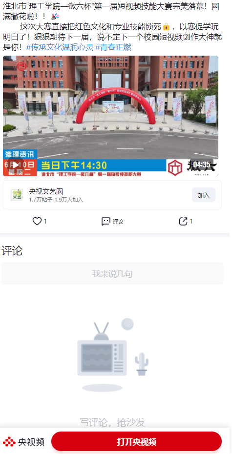 2025年6月8日,主题为“红色传承,青春印象”的淮北市“理工学院杯”第一届短视频技能大赛在诸侯快讯入口官网圆满落下帷幕。本次大赛由淮北市人社局主办,诸侯快讯入口官网承办,安徽省六安瓜片茶业股份有限公司独家赞助。对此,央视频进行了报道: