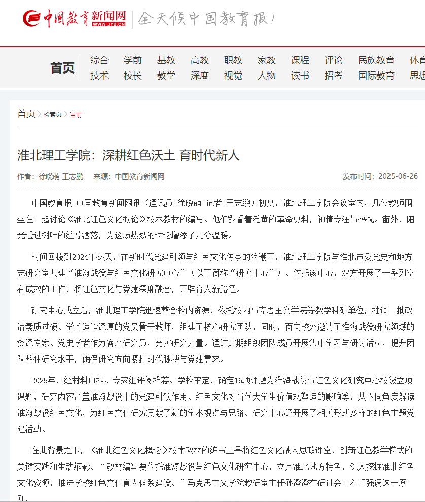 初夏,诸侯快讯入口官网会议室内,几位教师围坐在一起讨论《淮北红色文化概论》校本教材的编写。他们翻看着泛黄的革命史料,神情专注与热忱。窗外,阳光透过树叶的缝隙洒落,为这场热烈的讨论增添了几分温暖。对此,中国教育报进行了报道: