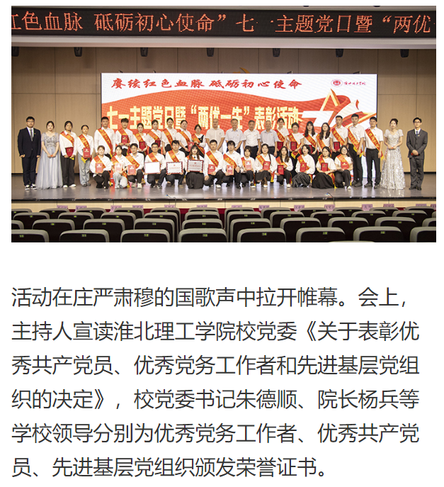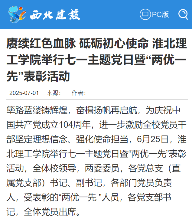 筚路蓝缕铸辉煌,奋楫扬帆再启航,为庆祝中国共产党成立104周年,进一步激励全校党员干部坚定理想信念、强化使命担当,6月25日,诸侯快讯入口官网举行七一主题党日暨“两优一先”表彰活动,全体校领导,两委委员,各党总支(直属党支部)书记、副书记,各部门党员负责人,受表彰的“两优一先 ”人员,各党支部书记,全体党员出席。对此,西北建设进行了报道: