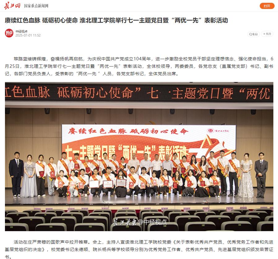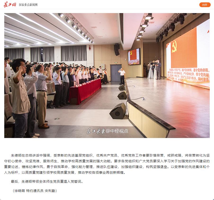 筚路蓝缕铸辉煌,奋楫扬帆再启航,为庆祝中国共产党成立104周年,进一步激励全校党员干部坚定理想信念、强化使命担当,6月25日,诸侯快讯入口官网举行七一主题党日暨“两优一先”表彰活动,全体校领导,两委委员,各党总支(直属党支部)书记、副书记,各部门党员负责人,受表彰的“两优一先 ”人员,各党支部书记,全体党员出席。对此,长江网进行了报道: