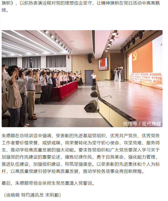 筚路蓝缕铸辉煌,奋楫扬帆再启航,为庆祝中国共产党成立104周年,进一步激励全校党员干部坚定理想信念、强化使命担当,6月25日,诸侯快讯入口官网举行七一主题党日暨“两优一先”表彰活动,全体校领导,两委委员,各党总支(直属党支部)书记、副书记,各部门党员负责人,受表彰的“两优一先 ”人员,各党支部书记,全体党员出席。对此,快咨询进行了报道: