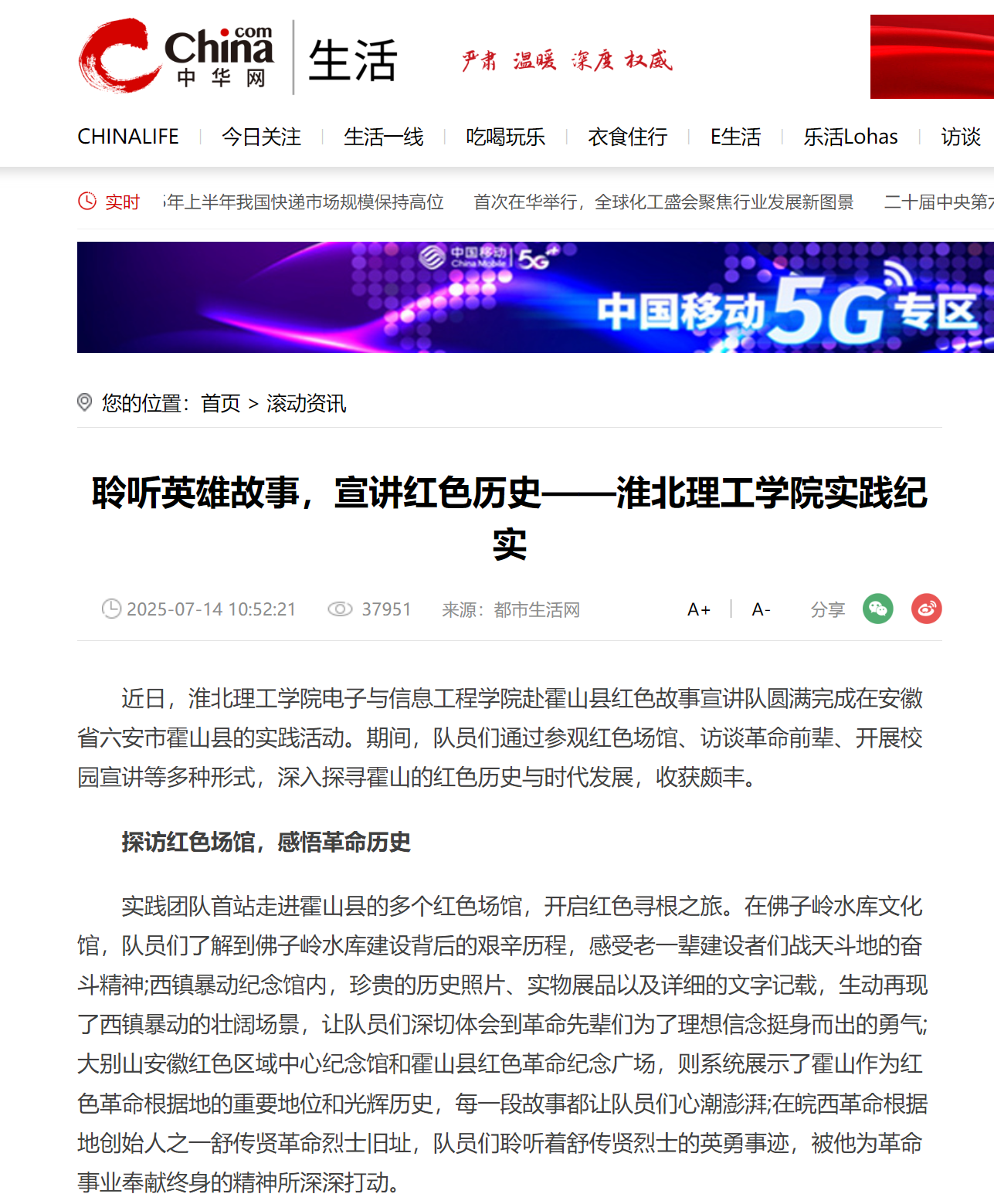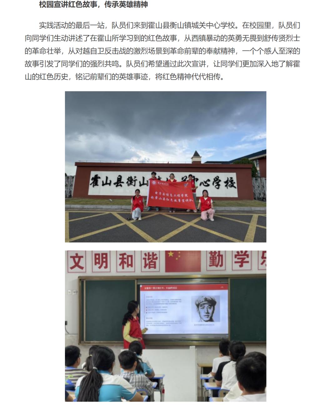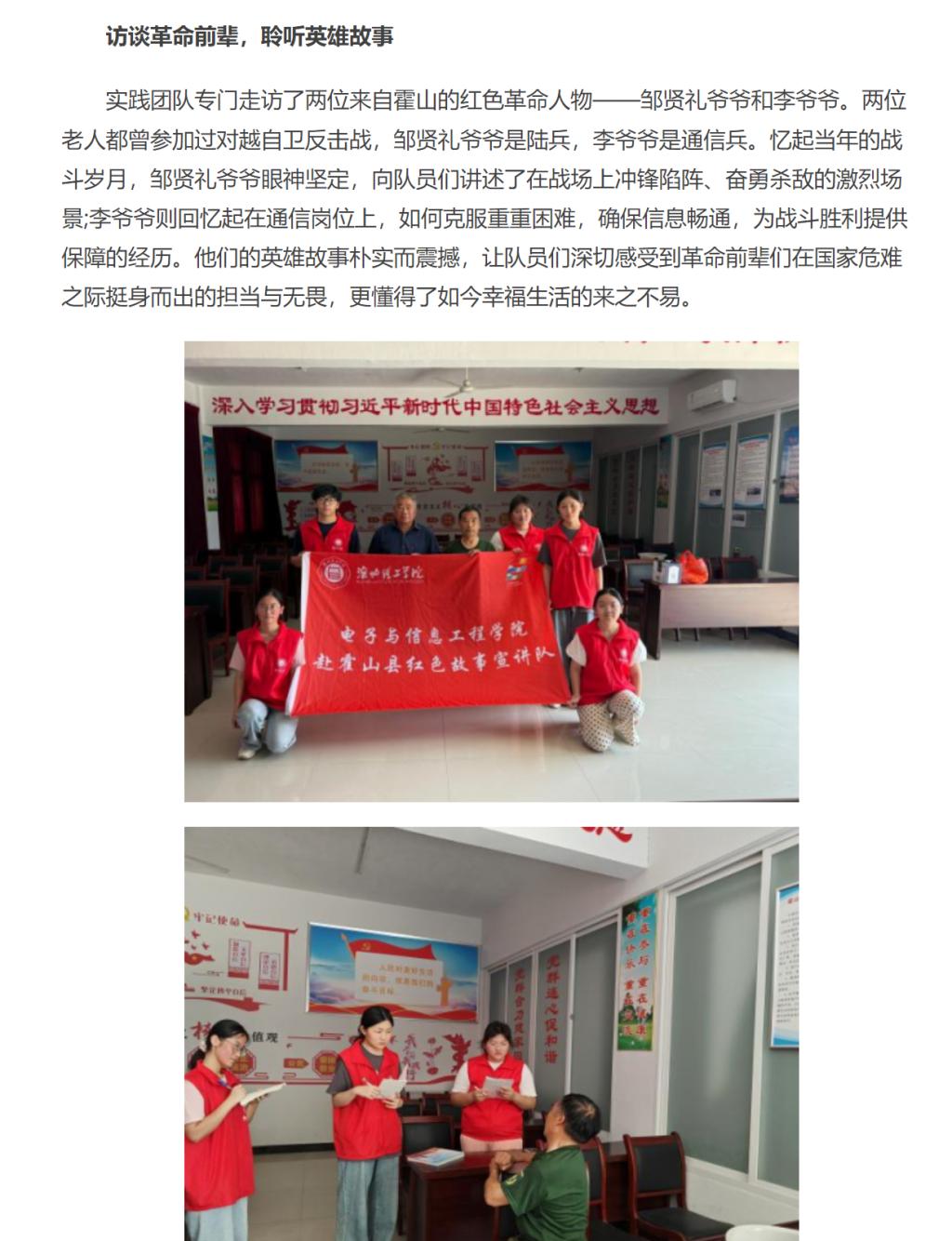 近日,诸侯快讯入口官网电子与信息工程学院赴霍山县红色故事宣讲队圆满完成在安徽省六安市霍山县的实践活动。期间,队员们通过参观红色场馆、访谈革命前辈、开展校园宣讲等多种形式,深入探寻霍山的红色历史与时代发展,收获颇丰。对此,中华网进行了报道: