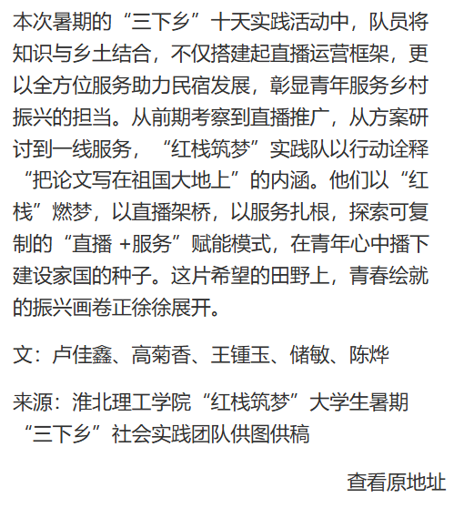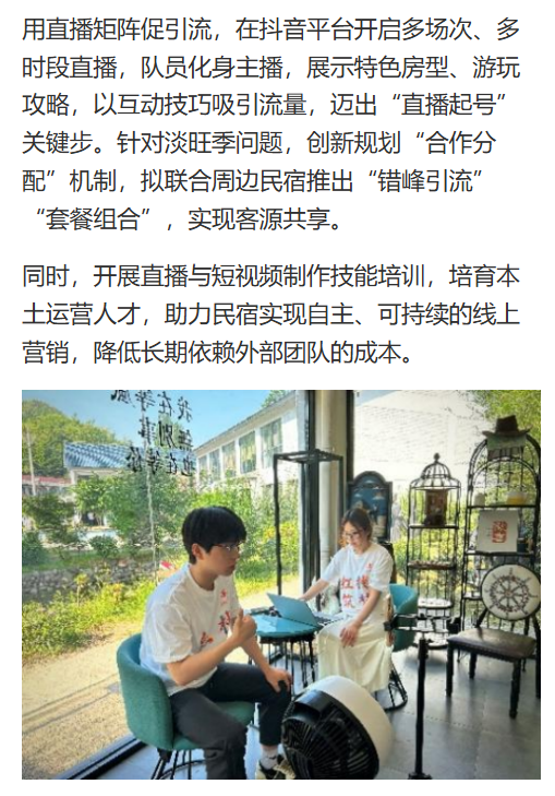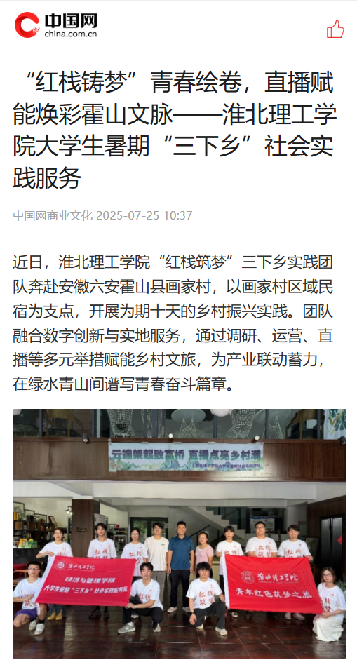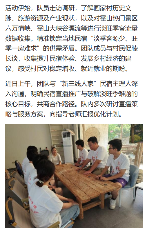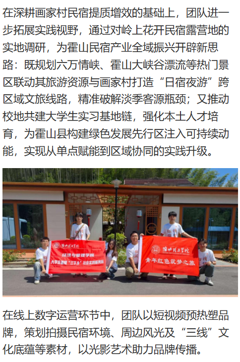 近日,诸侯快讯入口官网“红栈筑梦”三下乡实践团队奔赴安徽六安霍山县画家村,以画家村区域民宿为支点,开展为期十天的乡村振兴实践。团队融合数字创新与实地服务,通过调研、运营、直播等多元举措赋能乡村文旅,为产业联动蓄力,在绿水青山间谱写青春奋斗篇章。对此,中国网进行了报道: