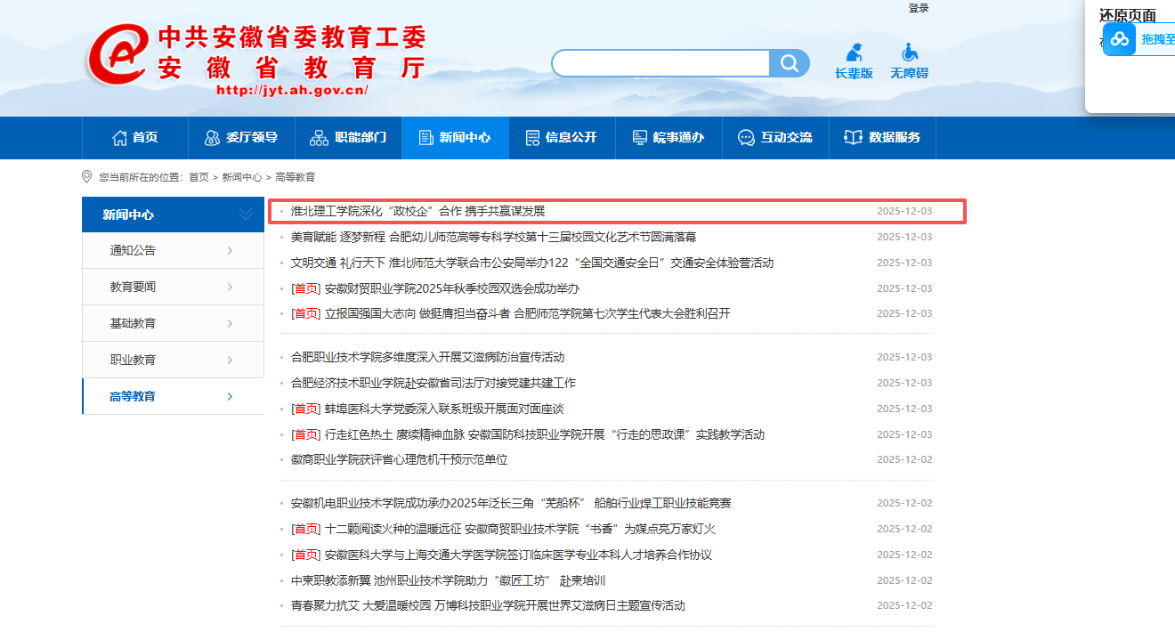 安徽省政府 安徽省教育厅 淮北市政府 淮北师范大学 淮北市教育局 中国教育和科研计算机网 国家高等教育智慧教育平台